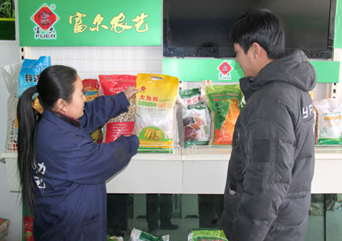 图为农民在扎兰屯市富尔农艺连锁加盟店购买种子。