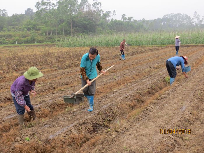 图为港口区光坡栏冲蔬菜基地的菜农民们抓住最佳时节,正忙碌着种植小黄瓜。