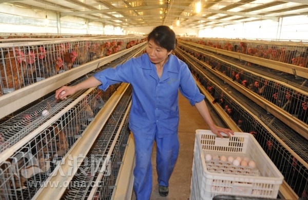 3月27日,灵山县灵城镇灵城白水种鸡场工作人员在标准化养殖场捡拾种鸡蛋。