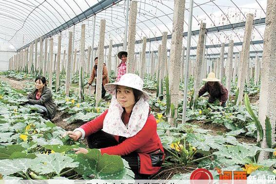 3月28日,在连城县文亨镇用心村沃田蔬菜种植专业合作社的大棚蔬菜基地里,工人们正在为火龙果套种西葫芦地里除草、施肥,工人们说,这种立体种植套种方法可以充分发挥土地资源的使用效率。据了解,该合作社每年帮助100多位农民就业,每位农民年可增收近8000元。