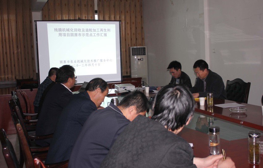 固原市农机推广服务中心通过播放制作的残膜机械化回收与造粒加工再生利用试验示范项目幻灯片对项目执行的情况、项目运行模式的探索、项目试验的实施、项目推广机具的保管、项目实施存在的问题、下一步工作的意见和建议等方面做了总结汇报。检查组查看了项目汇报资料,对固原市残膜机械化回收与造粒加工再生利用项目的实施给予了充分肯定。