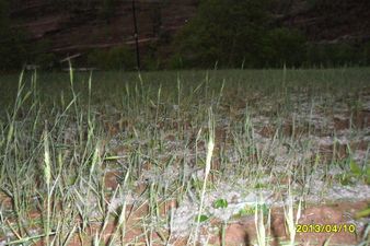 4月25日下午5时20分发生冰雹灾害,给武都区黄坪乡的农作物造成严重损失。