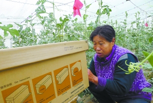 钻进侯占琴家的西瓜大棚,只见一个标有“授粉蜜蜂专用”字样纸箱放在一把旧椅子上。“这个箱子能‘住’5000只蜜蜂,眼下棚内温度有32℃左右,成群结队的蜜蜂正忙来忙去给西瓜授粉。”侯占琴算了一笔账,这箱蜜蜂是区农技推广站帮忙租来的,一个租期为10天,租金50元,每棚瓜有两个授粉期,相隔半个月,租蜜蜂授粉100元就能搞定。以往雇小工为西瓜授粉,两个授粉期至少得花600元。家里三个大棚一共租了3箱蜜蜂,可节省人工费1500元。
