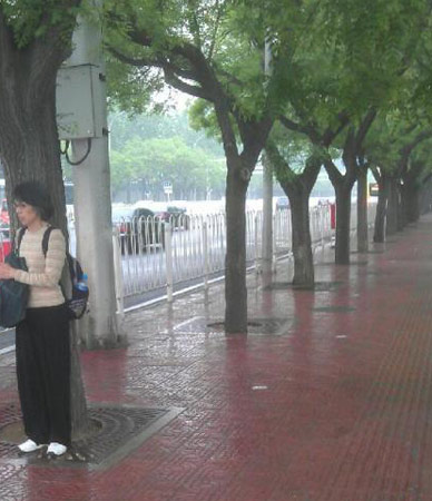 8日上午,北京城区出现降水。(图片来源:新浪微博)