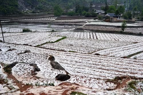这是5月7日在贵州省威宁县金钟镇大营村拍摄的冰雹灾害现场。