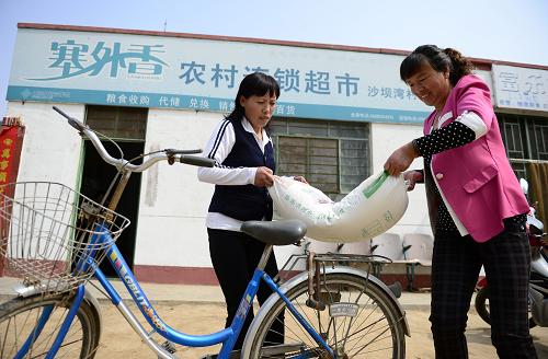 宁夏青铜峡市中滩乡沙坝湾村农户在“粮食银行”兑换点兑换成品粮。
