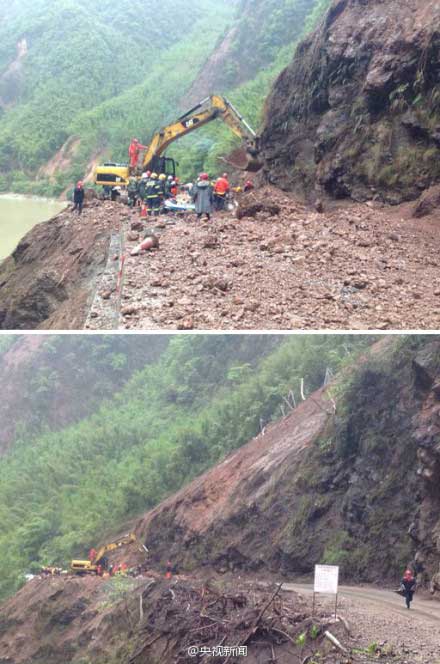 芦山至宝兴方向发生山体垮塌 2车被埋1人被困