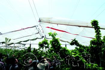 ¡¡¡¡8ÈÕ£¬É½¶«ÑĮ̀ÊдóÓ£ÌÒлá×éÖ¯ÁË50¶àÃû»áÔ±µ½ÑĮ̀ÊÐÅ©¿ÆÔº¡¢ÅîÀ³ÄÏÍõ´óÓ£ÌÒʾ·¶»ùµØÏÖ³¡¹ÛĦ¡£Ò»ÖÖÊÕÀ×ÔÈçµÄ±ÜÓê·À˪ÅïÈûáÔ±ÃÇ´ó¿ªÑ۽硣ÔÚÅ©¿ÆÔº´óÓ£ÌÒ»ùµØ£¬Ã¿¸ô8Ã×¾ÍÊúÓÐÒ»¸ùÖù×Ó£¬Öù×Ó¸ßÓÚÓ£ÌÒÊ÷£¬ÉÏÃæ¸²¸ÇמÛÒÒÏ©Åñ²¼£¬Åñ²¼´øÓÐÒ»¶¨ÆÂ¶È£¬ÓëÓ£ÌÒÊ÷Ö®¼äÁôÓÐ0.5-1Ã׵Ŀռ䡣