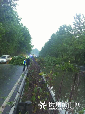 大风吹倒行道树交通受阻(图片来源:贵州都市网)
