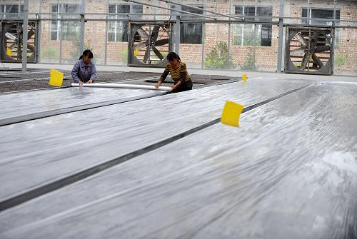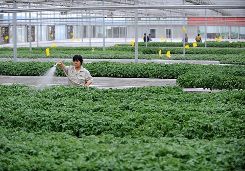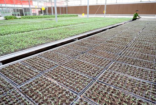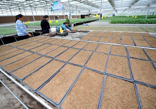 山西省太谷县是传统的蔬菜种植大县,蔬菜播种面积24万亩,产量100多万吨,设施蔬菜是当地农民增收的重要支柱。为解决菜农育苗难的后顾之忧,太谷县加大集约化育苗中心建设,集中培育辣椒、黄瓜、番茄等品种,向全县设施农业园区、周边农户及其他订单客户提供优质种苗。集约化育苗在降低菜农育苗风险的同时,节约了育苗成本,提高了蔬菜的定植成活率,为农户增产增收提供了保障。新华社记者燕雁摄