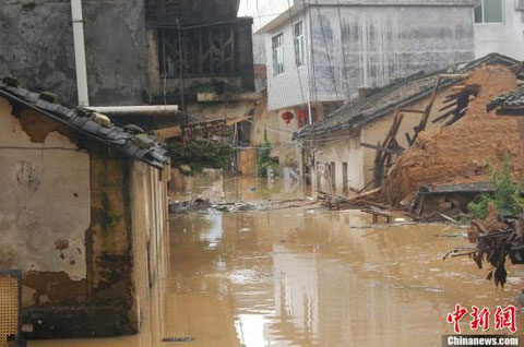 5月19日8时30分,因暴雨如注,福建龙岩市武平县岩前镇灵岩村被淹。到当天中午12时左右,河水倒灌村庄,被淹水位深度一度达到2米。经过近7个小时的救援,116名村民获安全转移。刘晓东摄