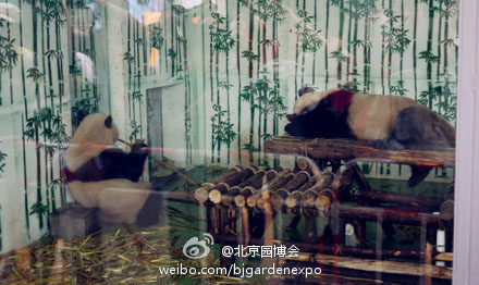正热闹的北京园林博览园昨天来了新朋友,据北京园博会新浪官方微博称,成都园昨天迎来了两只国宝大熊猫――“琪琪”和“芝芝”专程从成都飞来园博,驻进“微缩版熊猫基地”。趁着今天白天雨还未至,正好去园博会与憨态可掬的熊猫们来个近距离接触。