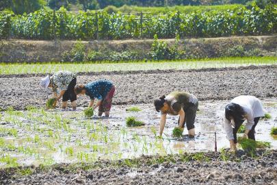 5月20日上午,梓潼县石牛镇板桥村2组的陈素群叫上帮工,在自家的制种田里栽起秧来。“水怎么样?”站在田坎边,记者问道。