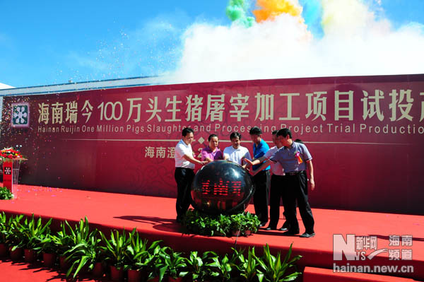 29日上午,海南瑞今100万头生猪屠宰加工项目试投产仪式在海南澄迈老城经济开发区举行。项目建成投产后,年产值近100亿元,将成为海南最大的畜产品综合加工基地,可大大提高岛内畜类产品的加工档次和生产量,促进特色畜产品的产业化发展。