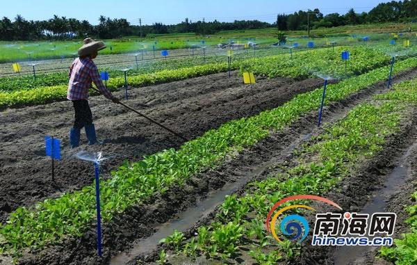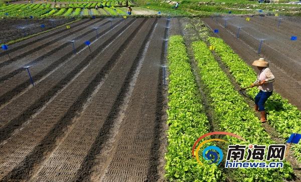 在琼海市潭门镇市前洋露天常年蔬菜基地,当地菜农正在880亩面积的菜地里紧张忙碌。