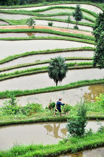 6月4日,在贵州省锦屏县固本乡东庄村,一名村民在搬运秧苗。新华社发(杨文斌 摄)