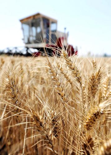 6月4日,粮农驾驶收割机在河南省洛阳市高新区辛店镇田间收割小麦。新华社发(黄政伟 摄)