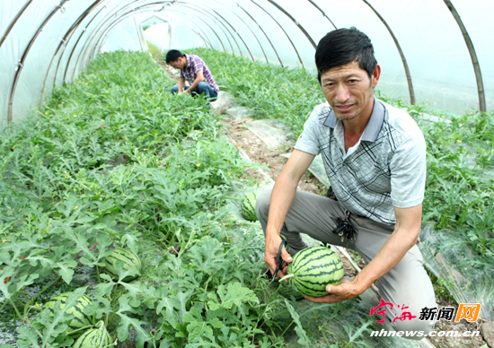 昨日上午,长街欢乐佳田农场的员工正在采摘西瓜,并以每公斤4元的价格运往宁波市场。长街镇是我县瓜类种植大镇,其中西瓜、黄瓜、哈密瓜等种植面积达12000多亩,由于天气等原因,今年西瓜上市时间比往年推迟半个月左右,西瓜价格比去年有所上升。