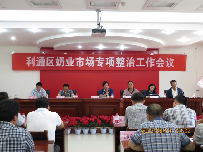 6月13日,利通区召开了奶业市场专项整治工作会议,公安、工商、农牧等部门行政执法人员和各乡镇、畜牧兽医站、乳品加工企业、规模养殖场、奶站(点)、奶牛贩运户负责人参加了会议。