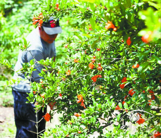 五月榴花红似火。如今,有“中国石榴之乡”美誉的山东省枣庄市峄城12万亩石榴园榴花进入盛花期,当地果农对盛花期的石榴树进行科学管理,为秋季果大甘甜、丰产丰收打下基础。