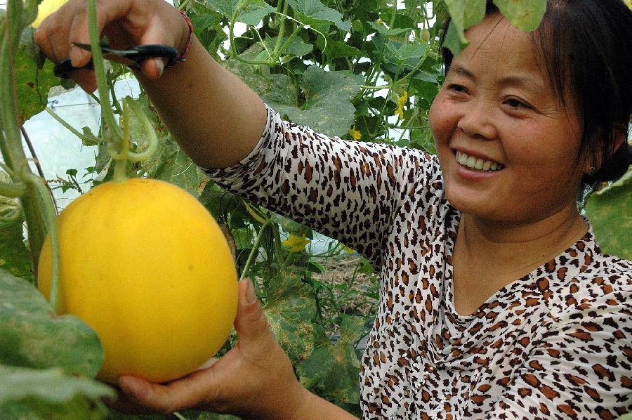 眼下正是瓜果成熟的季节,陕西杨凌现代农业示范园区种植的4000亩西瓜、甜瓜全面上市销售,总产量约11240余吨,平均亩产值达到1.5至2万元。作为国家西瓜栽培标准化示范区的杨凌现代农业示范园区西瓜基地,在西北农林科技大学多学科专家教授和农业、科技、质监等多部门的指导下,全面推广秸秆生物反应堆、水肥一体化、测土配方施肥、智能化精准农业、沼液综合利用等先进农业生产技术,生产出的西瓜、甜瓜因其皮薄、瓤酥、水分充足、含糖量高等特点备受消费者青睐,畅销全国各地。新华社记者 都红刚 摄