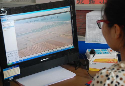 6月19日,在江苏省徐州市睢宁县,值班人员在浏览一处麦田实时监控画面。