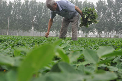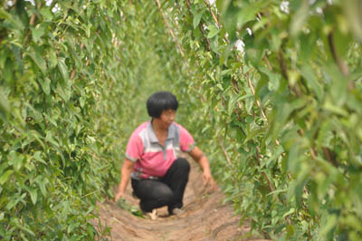 6月20日,山东聊城市茌平县贾寨镇永丰农民种植合作社社员在忙着给山药除草
