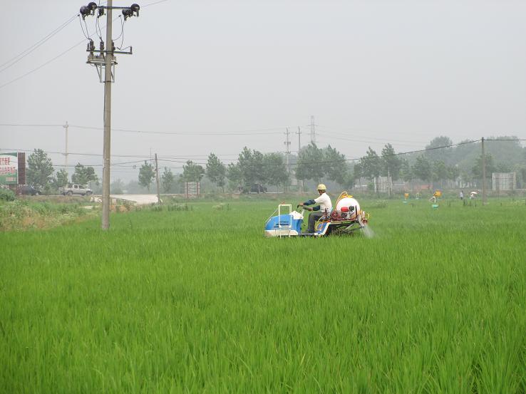 该县今年栽种早稻10万余亩,拥有49个标准化统防统治专业合作社,拥有各类机械化喷雾设备700余台,目前已实施统防统治面积5000余亩。图为湖口县文桥乡均桥村水稻绿色防控点,种田大户蔡初成正运用今年新添置的机翼式喷雾器喷洒农药。据了解,该机翼式喷雾器每天可以防治稻田300余亩。
