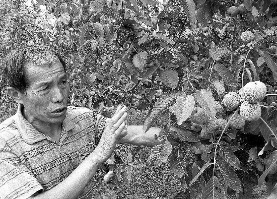 6月21日,三门峡市君龙林果有限责任公司员工马小宝向参观者介绍核桃园内的优质核桃。该公司60亩的优质核桃虽然尚未进入盛产期,但近两年仍吸引了青海、西宁等外地客商,去年产值20多万元。“去年我们还养了400头猪,为核桃园省下了不少肥料钱。”马小宝说。
