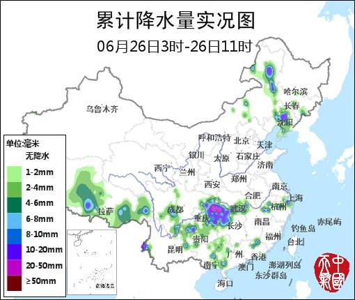 新农网讯 今天(26日)白天,降水主要集中在贵州、湖北、湖南、江西、四川、重庆、浙江、福建等地。其中,贵州中部、湖北东南部、湖南东北部、江西西北部、福建中东部的部分地区出现强降水天气,部分地区累积降水量可达50毫米以上。目前降水还在持续,雨天能见度低,需注意防范短时强降水对交通出行带来的不利影响以及可能引起的道路积水、城市内涝等。