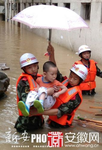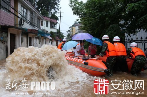 昨天下午,记者冒雨来到屯溪区梦园村,消防战士、民警等上百人都在抢救和转移被困居民。