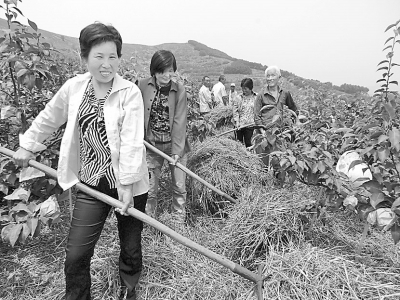 “一亩梨地只需覆盖秸秆8000斤左右,来年春天梨树出芽快、长得旺,而且增产效果明显。”唐玲生说。一连5年,唐玲生一直用秸秆覆盖果园,在自己取得了经济生态双重效益的同时,还引导本村97位果农推广此项技术,三夏时节消耗周边5个村庄1.2万多亩的小麦秸秆。现在,该县博望镇、柳河乡果农也开始仿效他的做法,给果园的土地盖上了自制的“秸秆膜”。