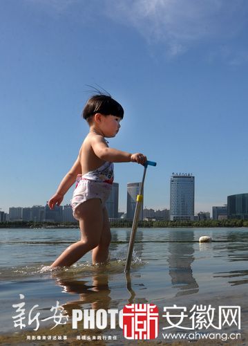 图为昨日天鹅湖边孩子在戏水。(来源安徽网)