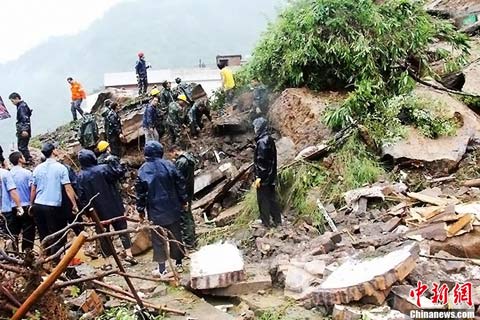 中新网云南盐津7月5日电(廖振华 彭一桐 王玉春)5日凌晨5时许,昭通市盐津县城附近一个村民小组发生山体滑坡,上千方泥石掩埋了2户居民,造成9人被埋。武警交通第三总队第八支队应急出动,火速赶赴现场展开救援,截至8时许,已成功救出4名被埋群众。