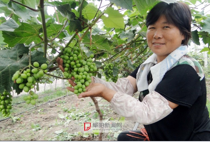 近日,在位于颍上县陈桥镇三王村的上海高科技三联塘农业产业园里,农技人员正在对即将上市的“红葡拉提”葡萄进行田管。