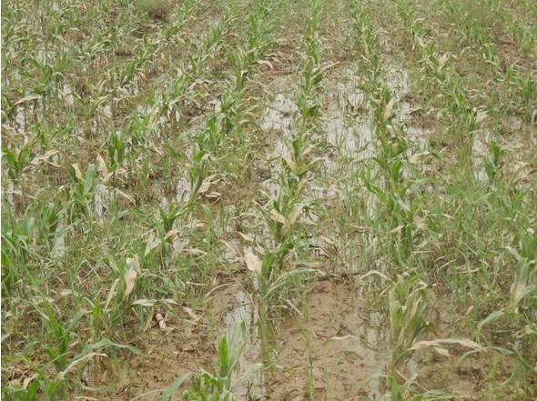 7月8日,天津市推广站组织技术人员深入静海县梁头镇、大丰堆镇等遭受雨涝和雹灾较重乡镇考察了玉米、棉花等作物受灾情况。部分低洼地区土壤已经连续4天处于水分饱和状态,部分棉田受雹灾影响较大,顶尖折损率达到50%以上。我站技术人员指出当前我市已经进入汛期,各级农技部门需积极应对,指导农户加强排涝措施,及时中耕散墒,棉田及时破膜,对脱肥地块适当追肥或者喷施叶面肥。