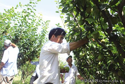 鹤岛梨园位于宁波最大的海岛乡镇鹤浦镇南部,种植面积1060亩,是全市最大的早熟棚栽梨基地,曾在去年全市蜜梨擂台赛中荣获最高糖度奖。受去年“海葵”台风重创,今年总产量较正常年份减产近30%,然而得益于果农一年来的悉心管理,今年在果型、色泽、含水量、糖度等参数上都有提升,预计销售价格也较去年提高20%左右。