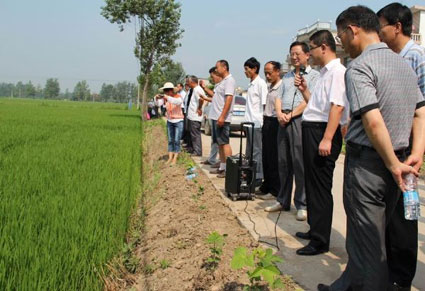 7月12日,淮南市凤台县刘集乡组织全乡村组干部、农机专业户、科技示范户、水稻种植大户在机插秧田头召开水稻机插秧成果观摩会,通过对水稻机插田块、手插田块、直播田块的水稻生长情况对比,让广大农户实地了解到水稻机插秧的优势,以大力推广水稻机插秧技术。