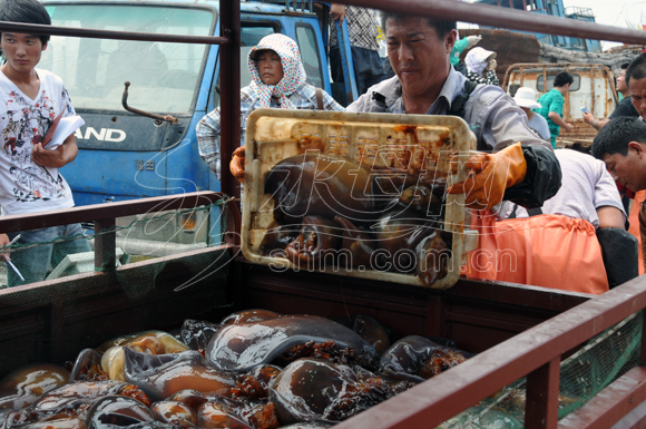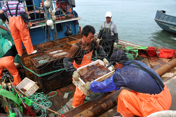上午,在该市三山岛渔港,54岁的船老大张吉明高兴地说:“我打鱼20多年了,今年的收成是这几年来最好的!我这艘100马力的渔船这一次共捕获了4800多斤的海蜇。”