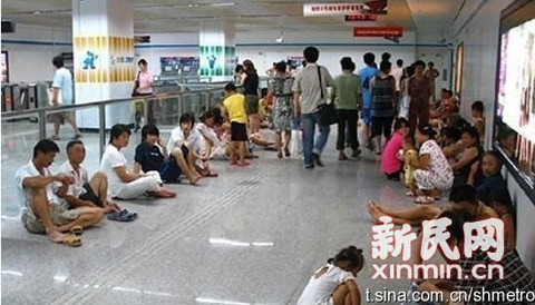 连日高温,上海地铁里都出现不少“纳凉族”。(来源:新民网)