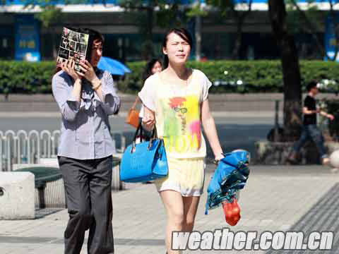 阳光刺眼行人顶着烈日前行(图:孙怀珍)