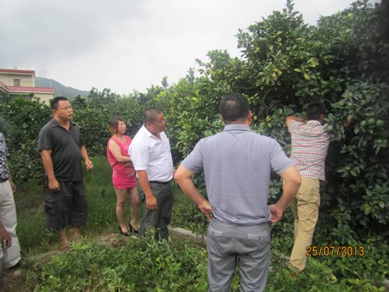 为促进将乐县果业的发展,7月25日,将乐县农业局组织技术干部和光明乡政府领导、农技员、柑桔种植大户到赣南寻乌县(赣南地区最大的柑桔产区,种植面积超过60万亩)考察柑桔种植产业。通过互动,与赣商钟贤东达成在将乐县投资发展脐橙产业的合作意向,由其牵头在光明乡建立200亩的脐橙示范园。