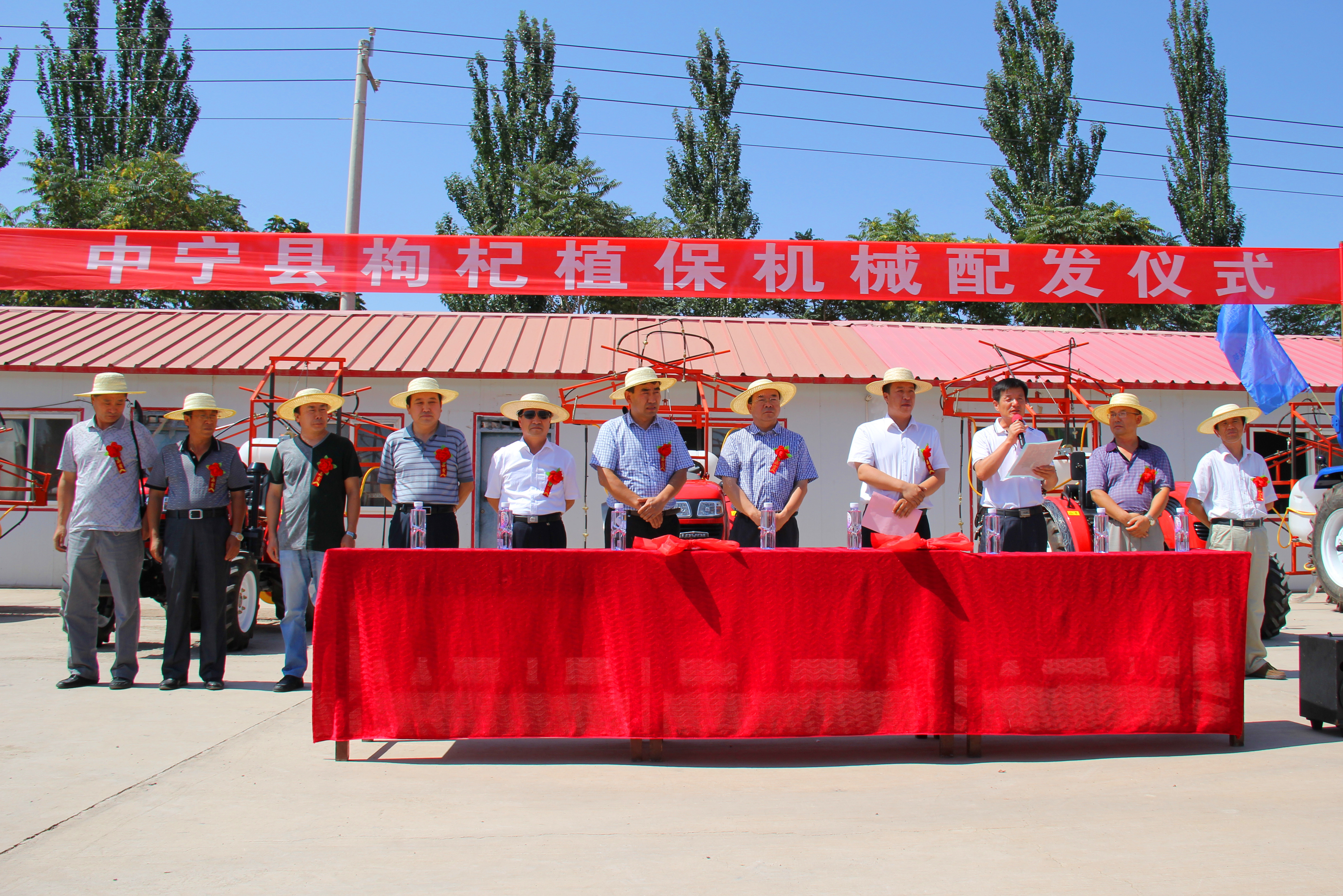8月4日,宁夏全区枸杞植保机械配发仪式在宁夏中宁县举行。自治区农牧厅农机局、农科院、林业厅及县委政府主要领导出席了仪式。中宁县副县长刘宏阳在枸杞植保机械配发仪式上讲到,枸杞统防统治作业公司严格按照统一经营管理、统一签订作业合同、统一收费标准、统一服务方法、统一农药配方等“五统一”模式经营。要通过新机具、新技术在枸杞病虫害防治工作中的试验示范作用,实现替茨农排忧解难的目的。