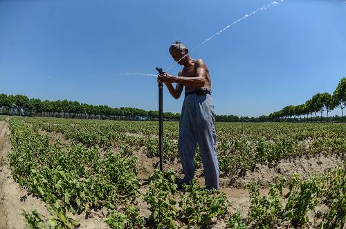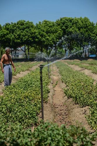 浙江连续晴热高温天气对杭白菊之乡――浙江桐乡的6万亩杭白菊生长已经造成一定的影响。据当地农业部门介绍,杭白菊不耐高温也不耐旱,气温超过35摄氏度就会停止生长,长时间连续高温甚至会导致杭白菊死亡。桐乡市各乡镇农技站的技术人员帮助种植户调整灌溉时间,疏通灌溉沟渠,保障种植户灌溉用水和用电,让万亩杭白菊能够顺利度过高温天气。新华社记者 徐昱 摄