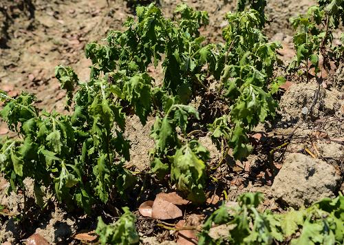 高温对桐乡市石门镇杭白菊示范园区内的杭白菊造成了一定的影响(8月8日摄)。