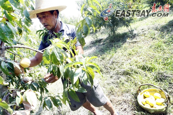 据枫泾镇农技中心副主任王亚林介绍,今年反常的天气,将枫泾黄桃的成熟期推迟了四五天。“3月底4月初,正当黄桃开花结果时,却遭遇了霜冻,影响结果3成以上;6月7月开始,梅雨时间较长,增加了病害;6月底开始,气温偏高,也会影响生长和产量。一般来说,每棵盛产黄桃树结果350只左右,今年平均只有200多只。不过,今年黄桃的口感和卖相都不差,减产多不一定减收。”