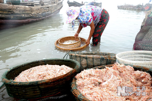 连日来,江苏连云港沿海渔民们忙着赶海捕捞、加工、晾晒虾皮。每逢这个时节,当地渔民都会推网捕捞毛虾,再通过加工水煮的方法制成餐桌上食用的传统虾皮。据渔民介绍,今年连云港沿海海域毛虾大丰收,是近来捕捞量最大的一年,每天出海推网捕捞的渔民都能满载而归,又大又肥的毛虾日上市量达10多万公斤,给渔民带来颇丰的经济收入。