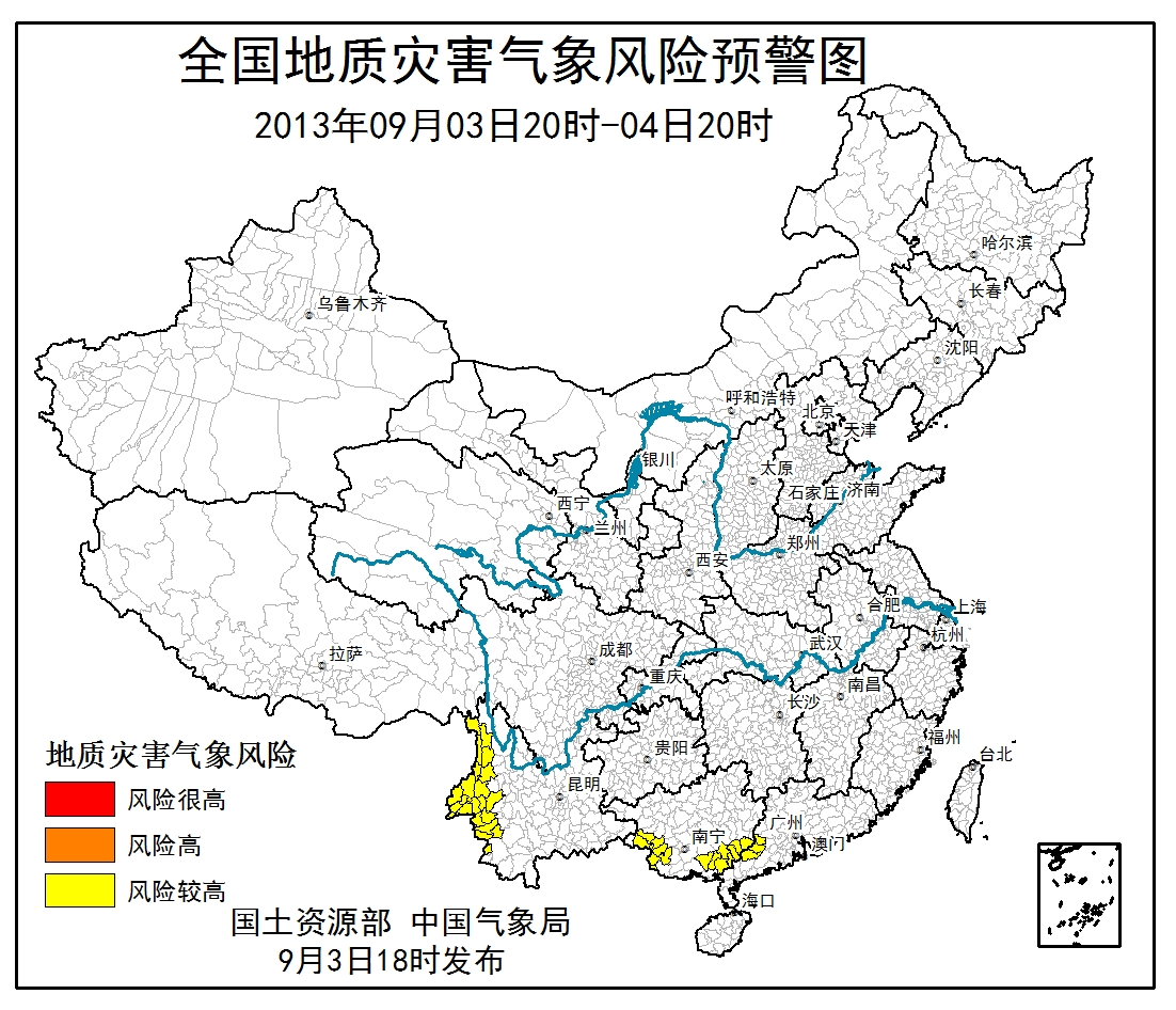 新农网讯 国土资源部与中国气象局9月3日18时联合发布地质灾害气象风险预警: