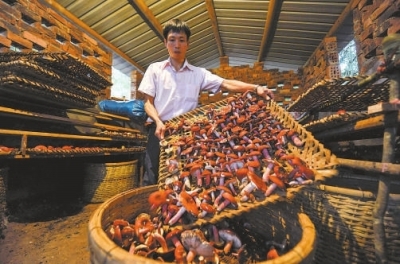 烤菇是最关键的工序,一批红菇得烤上10个小时,火候掌握要很精准。