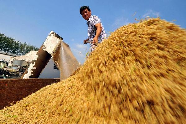 9月20日,安徽省滁州市南谯区腰铺镇农民将农机收割的水稻装车运晒。中秋时节,安徽、湖北、山东、山西等地的玉米、水稻等农作物正处于收获期,当地农民抓紧晴好天气进行抢收和晾晒,力保颗粒归仓,广袤的田野里到处是一派繁忙的秋收景象。
